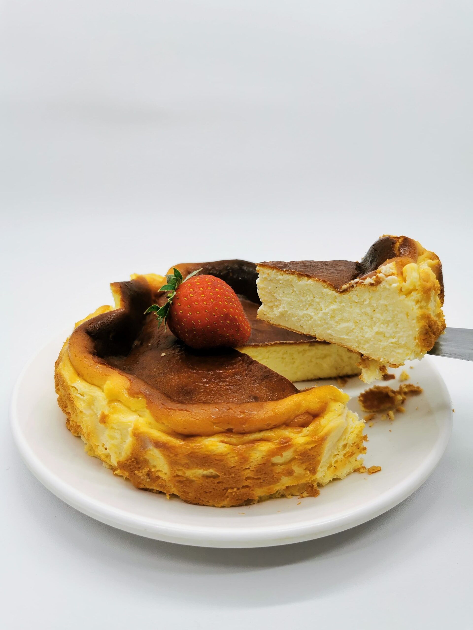 We use high quality cream cheese to make a dark and caramelized top Burnt Basque Cheesecake, which is the result of baking at a high temperature. This unique baking method gives the cheesecake a rich, creamy interior and a slightly burnt, bitter-sweet exterior.